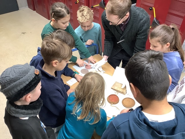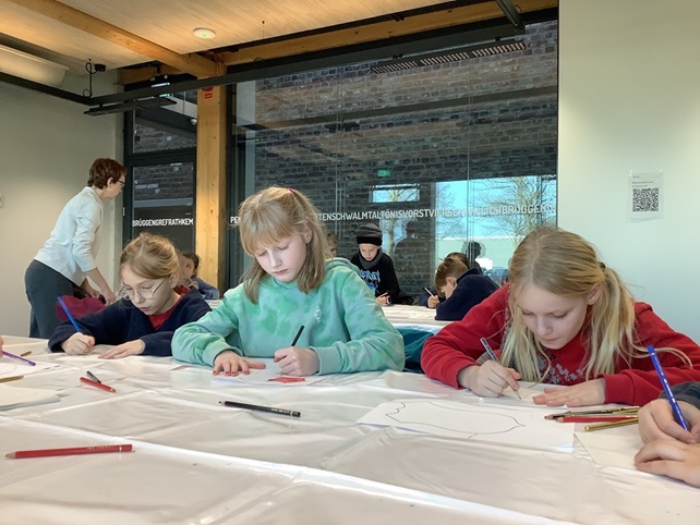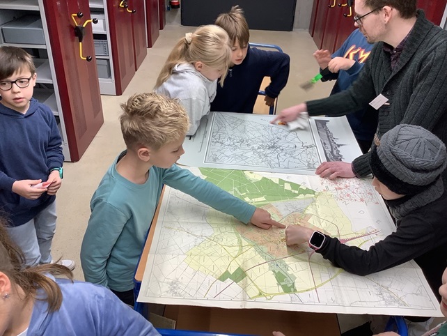 Im Januar haben wir mit den Klassen einen Ausflug nach Viersen ins Kreisarchiv gemacht. Bevor der Bus uns abgeholt hat, haben wir durch ein Bilderbuch erfahren, was ein Archiv ist. In Viersen angekommen, haben wir eine Einführung bekommen und danach wurden wir in Gruppen aufgeteilt. Eine Gruppe ging zuerst ins „Papierkrankenhaus“ und die andere durfte ins Archiv des Kreises. Anschließend haben wir getauscht. Nach einer Frühstückspause haben wir selbst Wappen gestaltet, mit Feder und Tinte geschrieben, ein Quiz gelöst und eine Ausstellung angesehen.