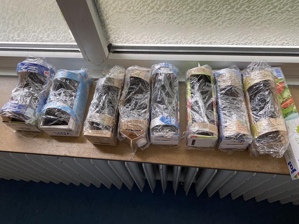 Im Anschluss daran kümmerten wir uns um den Bau der Bienenhotels für die Wildbienen. In unsere gesammelten Blechdosen hämmerten wir Löcher für die Luftzufuhr. Im Kunstunterricht malten wir die Dosen mit tollen bunten Farben an. Bambusstäbe ernteten wir im Garten unserer Mitschülerin und zersägten sie mit scharfen Sägen in kleine Stücke. Damit Bienchen ihre Flügel an den scharfen Kanten nicht verletzen, schliffen wir die Kanten mit Schleifpapier ab. In den letzten Schultagen befestigten wir die Bambusröhrchen mit Lehm in der Dose. Und nun hängen sie in unserem Schulgarten in der Nähe unserer Blumenwiese. Wir bedanken uns an dieser Stelle ganz herzlich für die Materialspenden von Obi aus Kaldenkirchen.