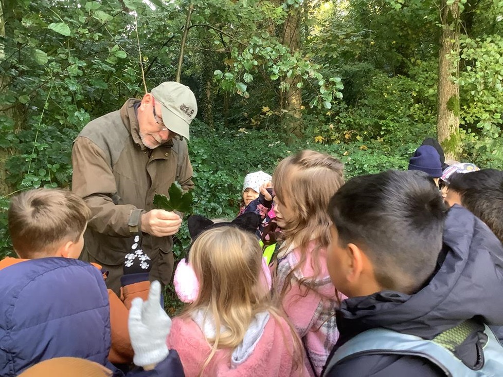 Herr Kolb stellte uns einige heimische Baumarten vor und ernannte Kinder zu Baumexperten, die eine wichtige Aufgabe hatten, das passende Blatt sowie die besprochenen Informationen zu behalten. Die Linde hat ein Herzblatt, das Ahorn sieht wie eine Hand aus und das Robinienblatt besteht aus mehreren kleinen Blättchen. Anschließend gab es eine kleine Entdeckungstour in Gruppen. Jede Gruppe sollte möglichst viele verschiedene Blätter unterschiedlicher Baumarten sammeln. Dabei entdeckten Kinder nicht nur verschiedene Laub- und Nadelbäume, sondern auch Sträucher, Pilze, Moos und viele andere Waldbewohner. Es war ein aufregender und lehrreicher Waldtag gewesen!