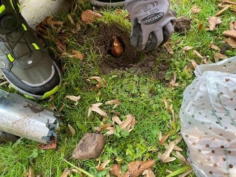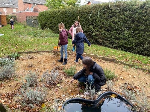 Nach den Herbstferien konnten wir nochmal einige Himbeeren ernten. Schließlich fingen wir damit an den Schulgarten vom Laub zu befreien und den Unterschlupf für den Igel auszubessern. Vielleicht haben wir Glück und ein Igel sucht unseren Schulgarten als Winterquartier auf. Noch vor den Winterferien hat die Schulgarten AG einige Zeit damit verbracht über 150 Blumenzwiebeln zu setzen, so dass wir unseren Schulgarten mit vielen insektenfreundlichen Frühblühern ausgestattet haben.