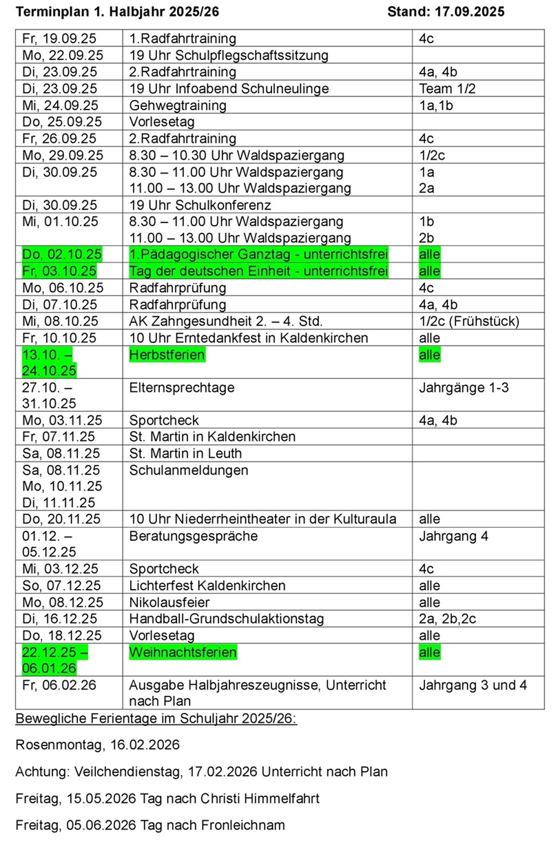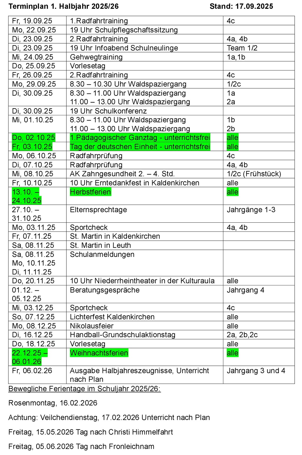 Terminplan 1. Halbjahr - Schuljahr 2025/26 Stand 17.09.2025